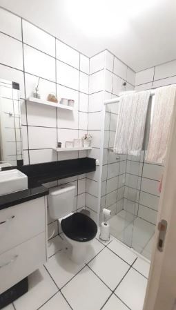 Banheiro com gabinete e box de blindex
