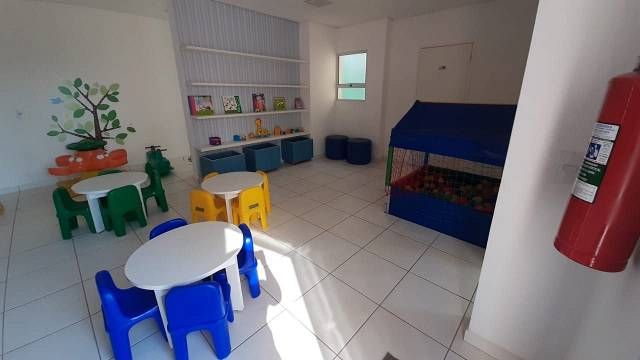 Área de lazer: Piscina, playground, área gourmet com churrasqueira, salão de festas, quadra esportiva, academia, brinquedoteca