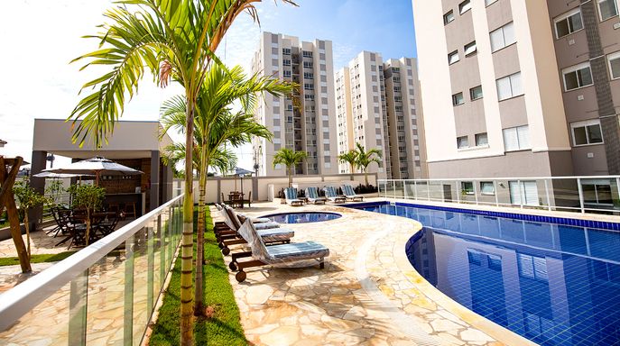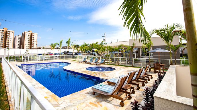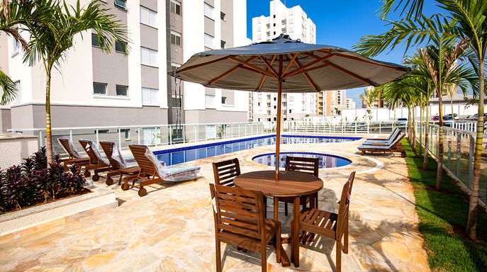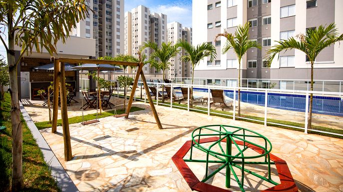 Lazer Completo: Piscinas (adulto e infantil), solário, salão de festas com churrasqueira, playground e quadra esportiva.