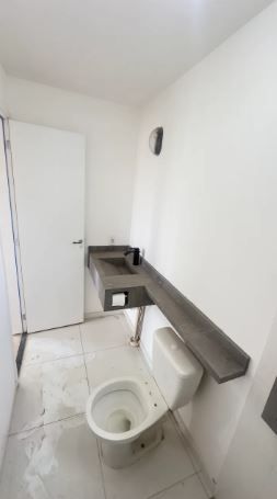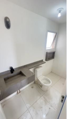 - Os banheiros contam com pias em porcelanato.