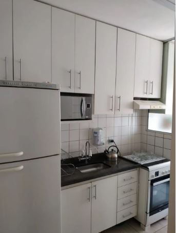 Cozinha americana com armários, Banheiro, Lavanderia.