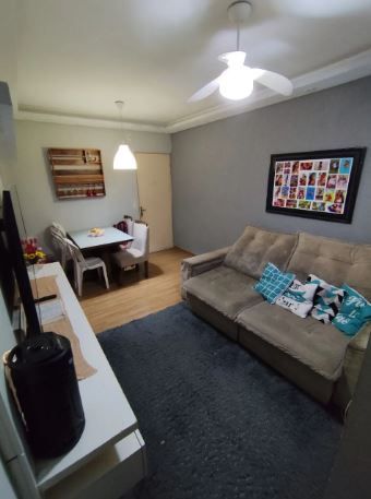 Destaques: Móveis planejados; Piso laminado; Sanca na sala,