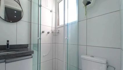 Banheiro com gabinete e box de blindex