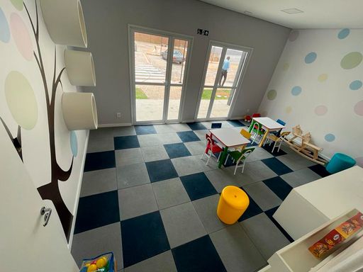 Área de lazer: Salão de festas, espaço gourmet com churrasqueira e forno de pizza, salão de jogos, brinquedoteca, quadra poliesportiva, playground, fitness interno e externo, bicicletário.