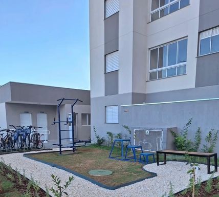 Área de lazer: Piscina adulto e infantil, salão de festas, espaço gourmet com churrasqueira, bike compartilhada, co-working, espaço pet, ferramentaria, lavanderia, academia/ginástica, meia quadra, playground, redário