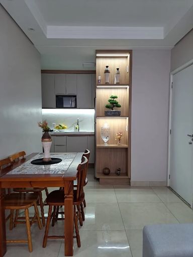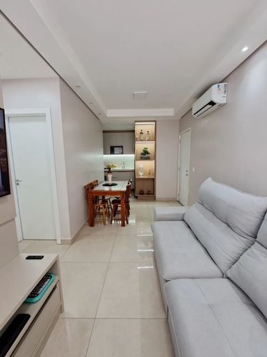 Salas de estar e jantar integradas, ar condicionado de 12 mil BTUs