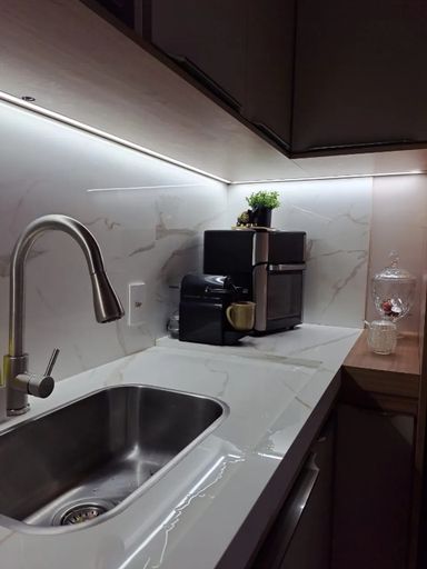 Teto rebaixado com sanca de gesso e iluminação em led