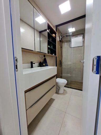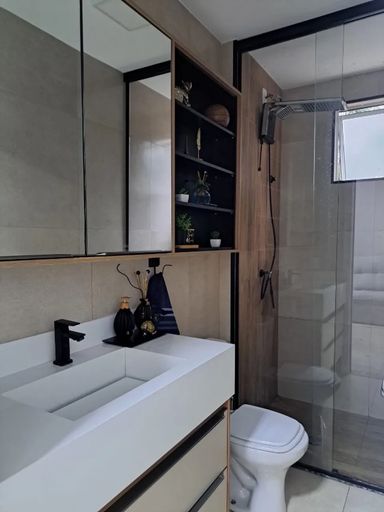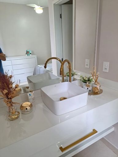 2 banheiros: social e suíte, com gabinete e box de blindex