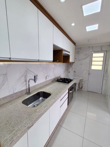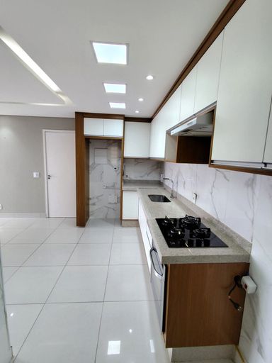Varanda gourmet com churrasqueira, vista livre permanente.