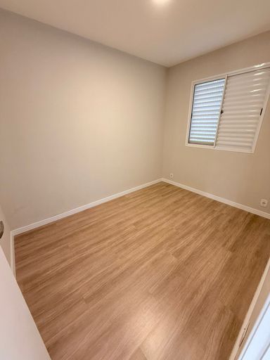 Sala ampla para 2 ambientes, cozinha, banheiro, área de serviço e 1 vaga de garagem descoberta.