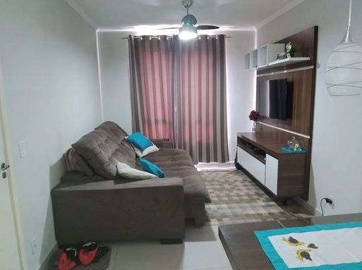 Sala integrando 2 ambientes (estar e jantar). Cozinha americana e área de serviço. Banheiro com box. 1 Vaga de garagem coberta.
