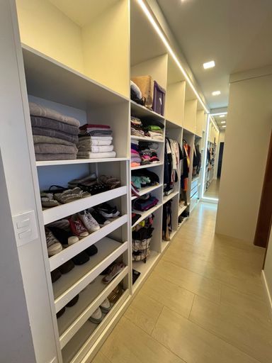 São 3 suítes, sendo 1 com closet planejado (piso superior).
