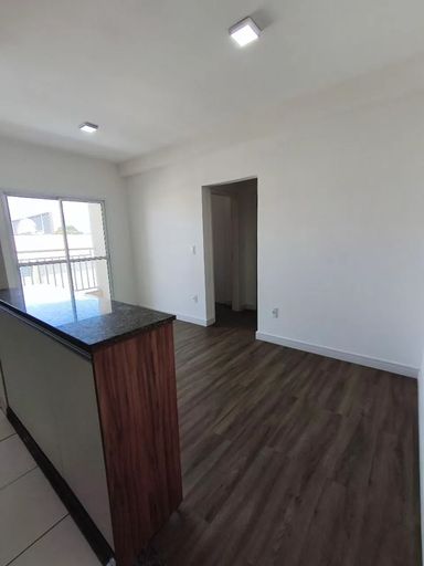 Cozinha americana, área de serviço, banheiro social e 1 vaga de garagem coberta.