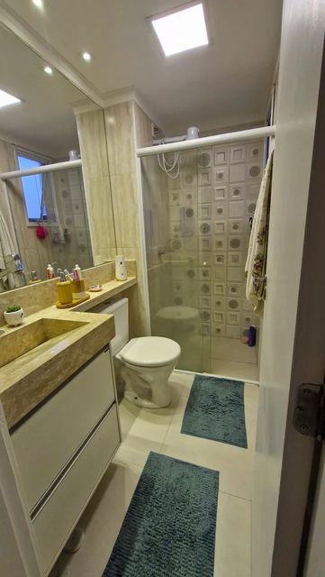 Banheiro com gabinete e box de blindex
