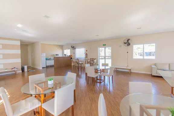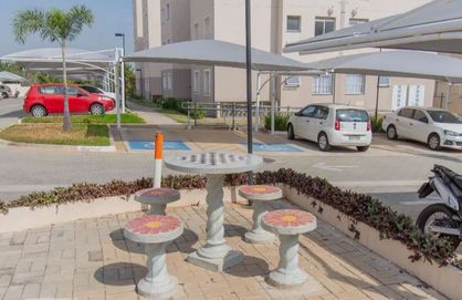 Área de lazer: Salão de festas, churrasqueira, salão de jogos, quadra de areia, quadra esportiva, playground