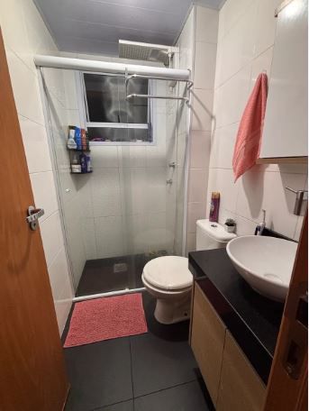 Banheiro social e 1 vaga de garagem coberta.