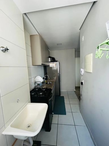Área de lazer: Piscinas adulto e infantil com solário, 2 churrasqueiras adjacentes, playground, salão de festas com churrasqueira na varanda, quadra poliesportiva.