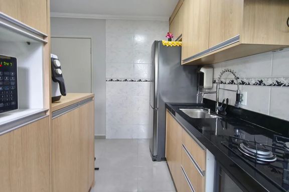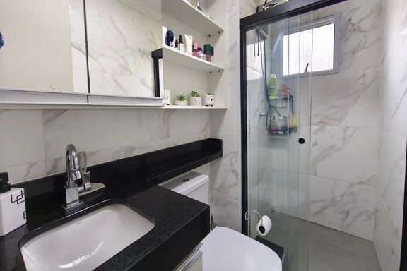 Área de lazer: 2 salões de festas, espaço gourmet com churrasqueira, academia, playground, sala de jogos, quadra poliesportiva, espaço pet