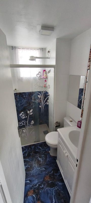 Banheiro com gabinete e box de blindex