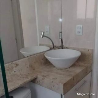 Banheiro com gabinete e box de blindex