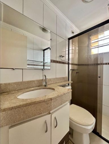 Banheiro com gabinete e box de blindex