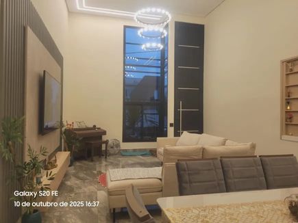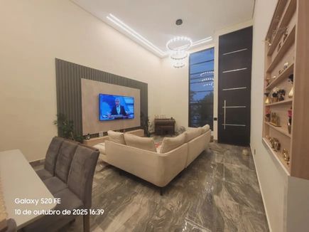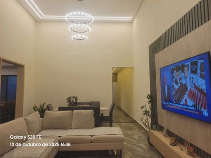 Living amplo, integrando sala de estar e TV, pé direito alto