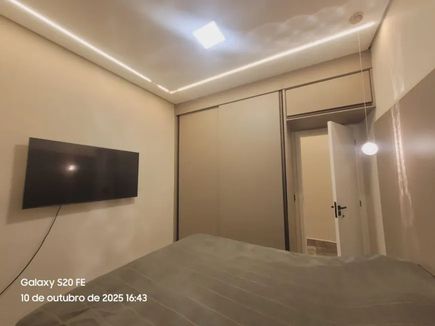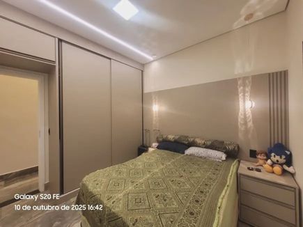 Dormitórios com guarda roupas planejados, sendo 1 suíte master